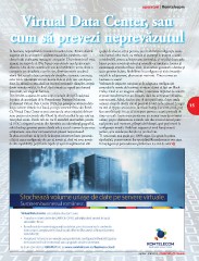 operatori | Romtelecom Virtual Data Center, sau cum să prevezi neprevăzutul În business, neprevăzutul e inamicul numărul unu. Printre efectele spațiul de stocare, cât și puterea, sau să schimbi configurația serve - negative ale lui se numără: scăderea încasărilor, pierderea unor rului virtual. Mai mult, nu trebuie să investești la început o sumă clienți loiali și afectarea reputației companiei. Deși nimeni nu-l vrea, considerabilă pentru achiziționarea serverului, ci vei plăti doar ratele nimeni nu scapă de el. Dar îi poți evita efectele care îți afectează lunare pentru serviciu și salvezi și costurile cu insta larea, locarea și afacerea. Una dintre cauzele cele mai des întâlnite în urma căreia o mentenanța serverelor fizice. Deci, ai securitate garantată a datelor și companie are de suferit, e cea în care, dintr-un motiv sau altul, acces garantat la date, flexibilitate în configurare și nicio investiție rămâi fără acces la date: contacte ale clienților, comenzi, contracte, inițială în echipament, plus costuri mai mici. Cine nu vrea un orice fel de informație cu care lucrezi zi de zi și de care ești depen - business ca acesta? dent. În situații ca asta, dacă nu onorezi comenzile clienților, aceștia Vorbeam de inițiative curajoase și de adaptarea configurației devin nemulțumiți și, în final, dacă situația se repetă sau durează serverului la nevoia de business: să zicem că vrei să faci un Black prea mult, vor alege alt furnizor. Friday. Când ai un magazin online, o asemenea inițiativă de vânzări Din fericire, a apărut, în acest scop, o soluție de tip Cloud pusă se poate transforma într-un dezastru dacă nu ai în spate infrastruc - la punct de specialiștii de la Romtelecom Business Solutions. tura necesară. Adică, dacă pe site-ul tău intră foarte, foarte mulți Se cheamă Virtual Data Center (VDC) și presupune stocarea date - oameni atrași de ofertă, site-ul poate să devină nefuncțional. Și sigur 15 lor pe servere virtuale în Cloud, și nu pe serverele fizice din firmă. nu vrei să îți pice site-ul chiar de Black Friday. Cu VDC, însă, poți Cu Virtual Data Center te poți aventura la orice inițiativă de busi - face asta fără griji: în caz că anticipezi pentru o scurtă perioadă de ness, pentru că serverele din Cloud îți oferă beneficii la care nici nu timp un trafic foarte mare pe site sau un număr mare de comenzi visai până acum. Datele tale nu vor fi niciodată inaccesibile, pentru online, poți re-dimensiona resursele tale din serverul virtual punc - că VDC e singurul serviciu din România cu redundanță geografică, tual pentru acel moment, plătești cât folosești, apoi poți reveni la adică backup garantat pentru datele tale și acces la server de pe orice configurația inițială. Astfel ești asigurat că totul funcționează echipament: asta chiar că înseamnă să prevezi neprevă zu tul! perfect, spre satisfacția clienților și profitul tău. În plus, nu trebuie să îți iei de la început un server foarte puternic, Te costă mult mai puțin și e 100% sigur. Și e gratis în prima ci îți iei exact configurația de care ai nevoie și, dacă vei avea nevoie săptămână, pentru testare. Iar specialiștii Romtelecom te vor ajuta de alte capabilități, poți foarte repede și ușor să suplimentezi atât în înțelegerea și personalizarea platformei. Ce zici de asta? aprilie - mai 2014, ComuniC@Ții mobile