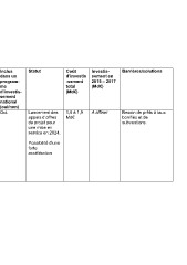 Secteur Sous- Nom du Entité Description Inclus Statut Coût Investis- Barrières/solutions