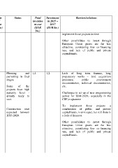 Sector Sub-sector Project name Implementi Description Included in Status Total Investment Barriers/solutions