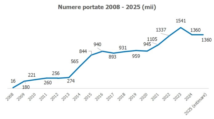 O creștere exponențială a avut loc în anul 2014, numerele portate între operatori crescând semnificativ și depășind 500.000 de numere, iar începând cu 2021, în fiecare an s-au portat peste 1.000.000 de numere.