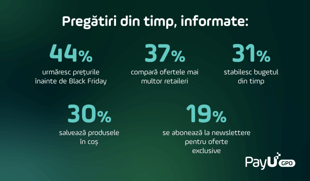 ”Black Friday nu mai este un moment de cumpărături spontane, ci un eveniment bine planificat, în care prețul, valoarea percepută și experiența de plată joacă un rol decisiv. Cumpărătorul român din 2025 este pragmatic, atent la raportul calitate-preț și a adoptat deja metodele digitale de plată, care oferă siguranță și eficiență în procesul de achiziție”, adaugă Elena Gheorghe, Country Manager PayU GPO România și Ungaria.