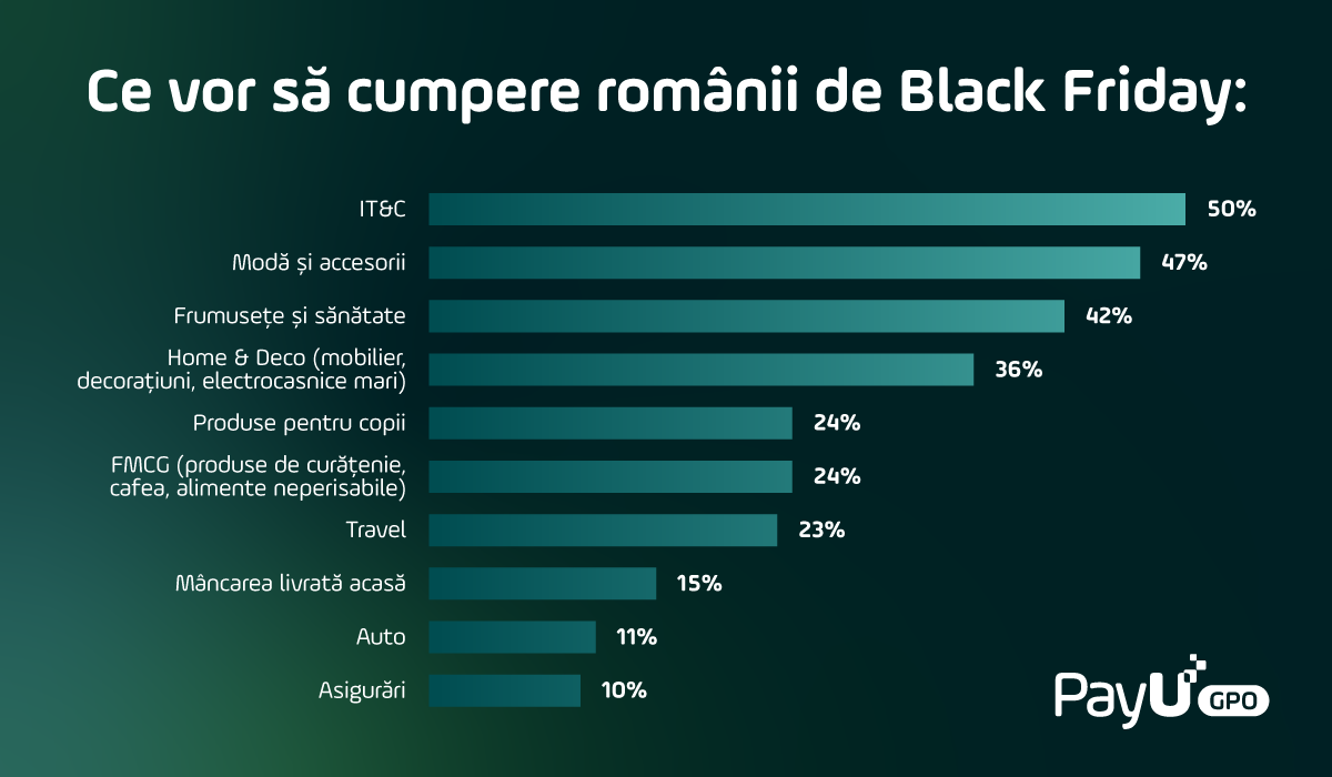 ”Black Friday nu mai este un moment de cumpărături spontane, ci un eveniment bine planificat, în care prețul, valoarea percepută și experiența de plată joacă un rol decisiv. Cumpărătorul român din 2025 este pragmatic, atent la raportul calitate-preț și a adoptat deja metodele digitale de plată, care oferă siguranță și eficiență în procesul de achiziție”, adaugă Elena Gheorghe, Country Manager PayU GPO România și Ungaria.