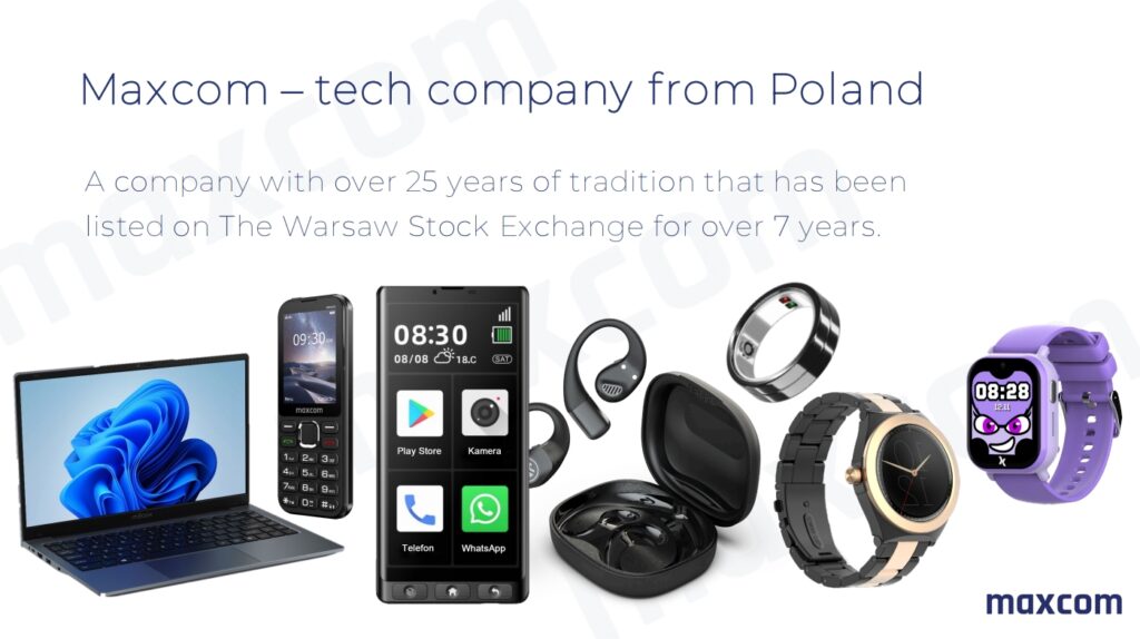 Fondată acum peste 25 de ani, compania Maxcom a evoluat dintr-un producător de telefoane pentru seniori într-un dezvoltator complex de tehnologii electronice inteligente, cu un portofoliu extins de smartwatch-uri, ceasuri pentru copii și dispozitive purtabile pentru plăți contactless.
