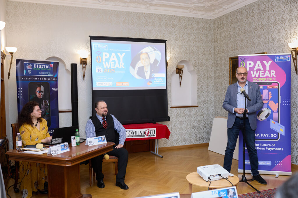Conferința PAY-WEAR 2025, organizată de Digital Transformation Council împreună cu revista COMUNICAȚII Mobile pe 16 octombrie 2025, a continuat seria de dezbateri despre viitorul plăților digitale, moderate de Ion Vaciu și Roxana Onea, aducând pe scenă lideri ai inovației din telecomunicații, fintech și dispozitive inteligente.
