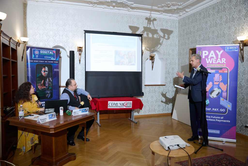 Conferința PAY-WEAR 2025, organizată de Digital Transformation Council împreună cu revista COMUNICAȚII Mobile pe 16 octombrie 2025, a continuat seria de dezbateri despre viitorul plăților digitale, moderate de Ion Vaciu și Roxana Onea, aducând pe scenă lideri ai inovației din telecomunicații, fintech și dispozitive inteligente.