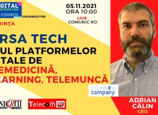 Adrian CĂLIN - CEO - THE e-LEARNING COMPANY @ Conferința BURSA TECH România - Topul platformelor de Telemedicină, eLearning, Telemuncă, organizată de către Digital...