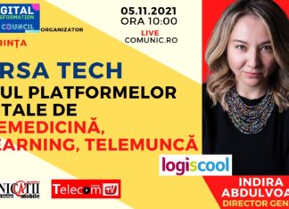 Indira ABDULVOAP - DIRECTOR GENERAL - LOGISCOOL @ Conferința BURSA TECH România - Topul platformelor de Telemedicină, eLearning, Telemuncă, organizată de către Digital Transformation...
