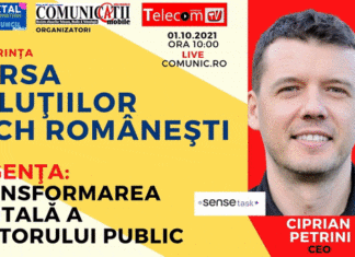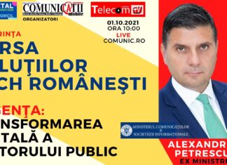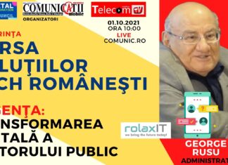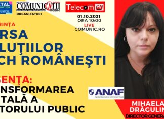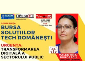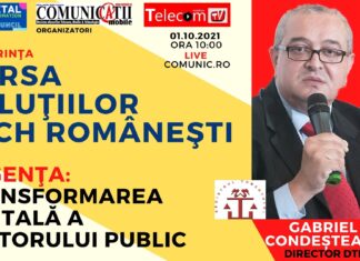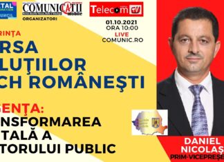 Digital Transformation Council, Revista COMUNICAŢII Mobile şi TELECOMTV.ro organizează pe 1 octombrie 2021, ora 10:00 CONFERINŢA “BURSA SOLUŢIILOR TECH ROMÂNEŞTI PENTRU TRANSFORMAREA DIGITALĂ A...