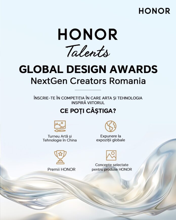 HONOR lansează în premieră în România competiția internațională HONOR Talents – Global Design Awards, dedicată pasionaților de design, artă digitală și inovație tehnologică. Pentru prima dată, România are o etapă locală în cadrul acestei competiții globale – HONOR Talents: NextGen Creators Romania. Sesiunea de înscrieri este deschisă până pe 10 decembrie 2025 (ora 17:00), printr-un formular dedicat disponibil pe site-ul competiției globale.