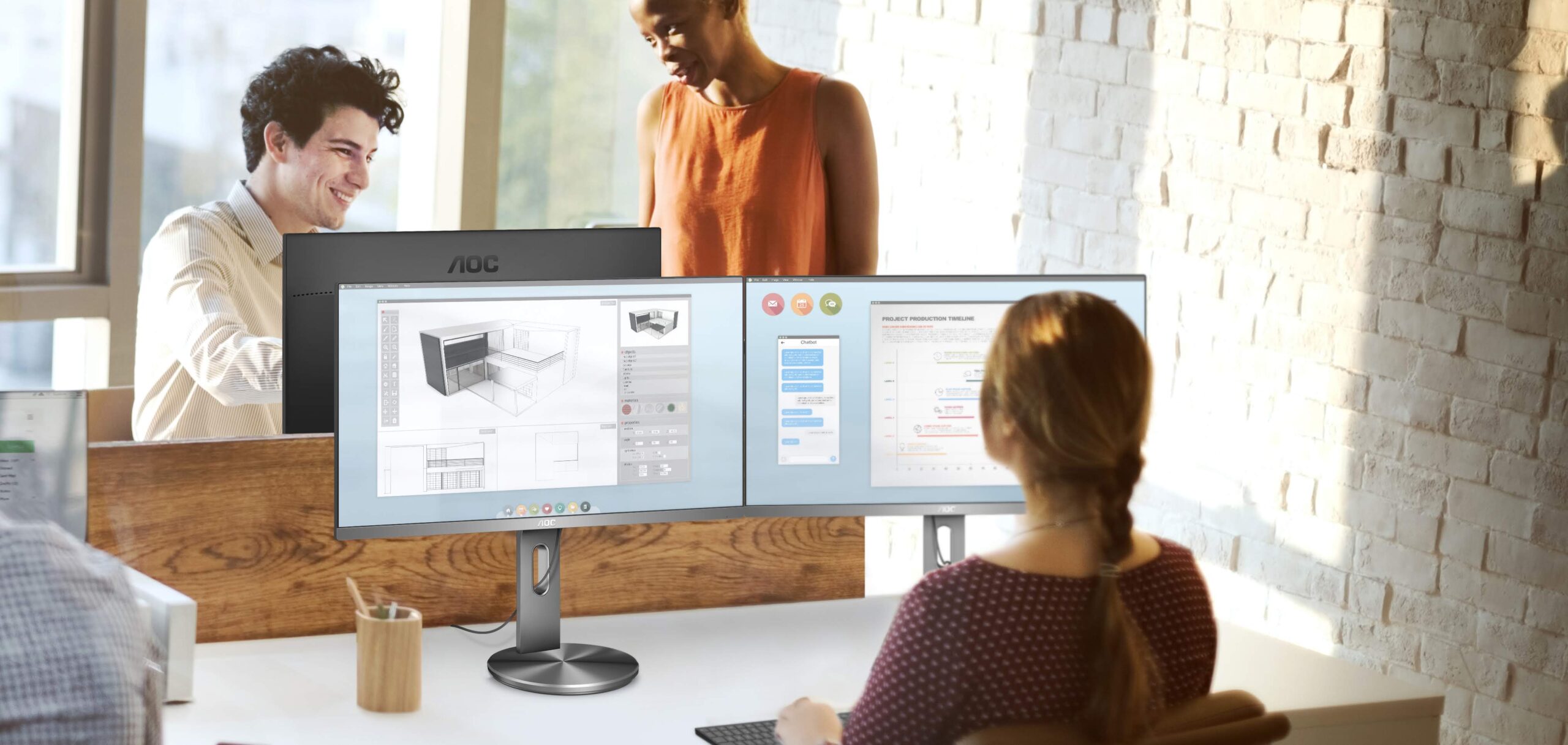 Mulți profesioniști petrec un timp semnificativ de lung folosindu-și monitorul în fiecare zi iar AOC are soluția perfectă pentru ca acest timp să fie cât mai confortabil posibil. Standul ergonomic poate fi ajustat în înălțime (cu 130 mm), poate fi pivotat (-45°/+45°) dar și înclinat (-3.5°/+19.5°). Pentru utilizatorii care lucrează cu conținut vertical, monitorul poate fi pivotat în modul portret. Adițional, monitorul folosește modul Low Blue Light, ce reduce lungimile de unde scurte și de mare putere a luminii albastre și contribuie astfel la sănătatea ochilor.