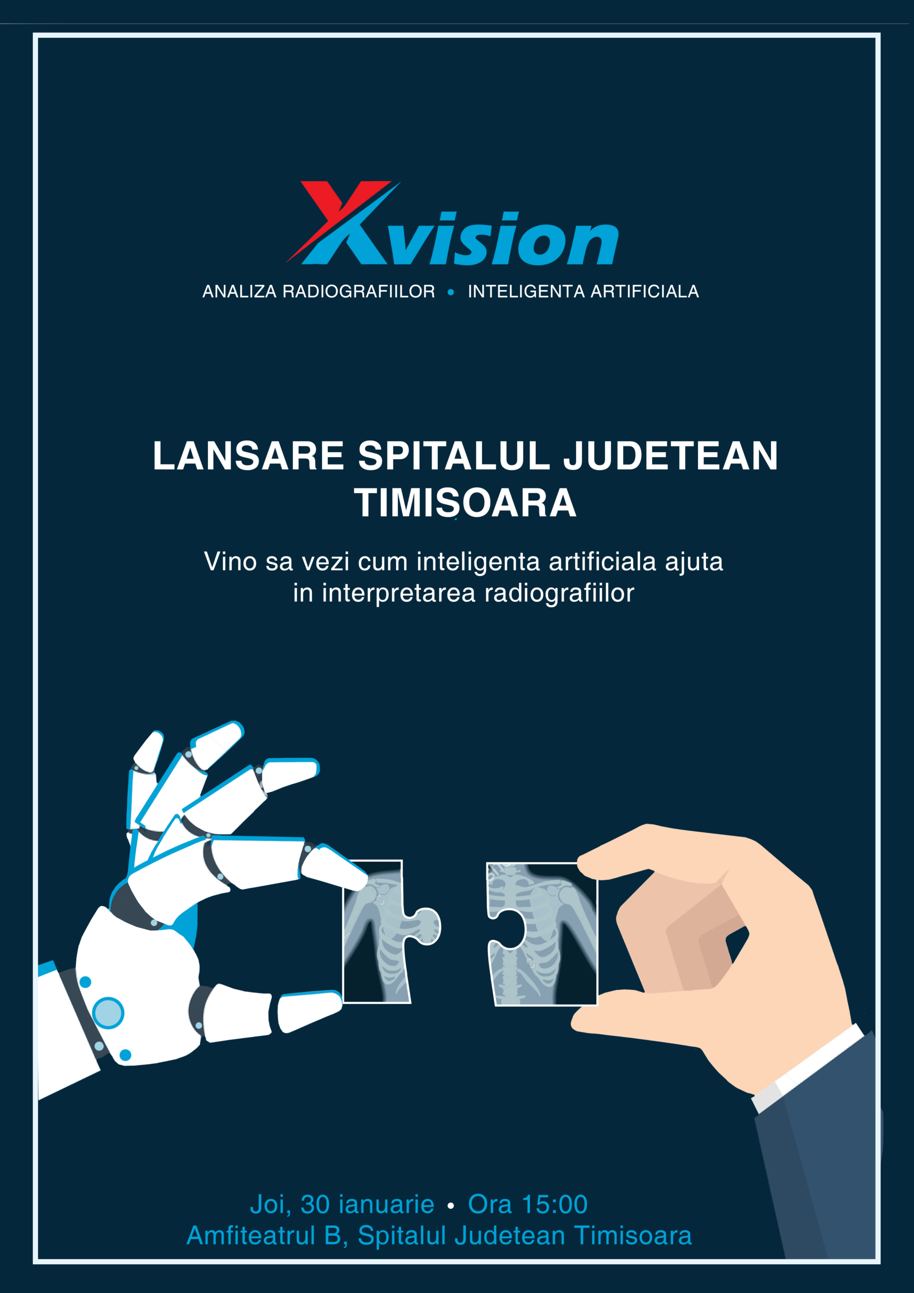 În premieră în România, la Spitalul Clinic Județean de Urgență ”Pius Brînzeu” din Timișoara, startup-ul MedTech XVision introduce o platformă medicală care analizează radiografiile pulmonare folosind inteligența artificială. Lansarea are loc pe 30 ianuarie 2020, în amfiteatrul B al spitalului. Aplicația dezvoltată de XVision, prima de acest tip din România, permite o analiză mai rapidă și ușoară a radiografiilor, medicii putând astfel să interpreteze până la 200 de radiografii pulmonare/zi, cu 20% mai multe decât în prezent.